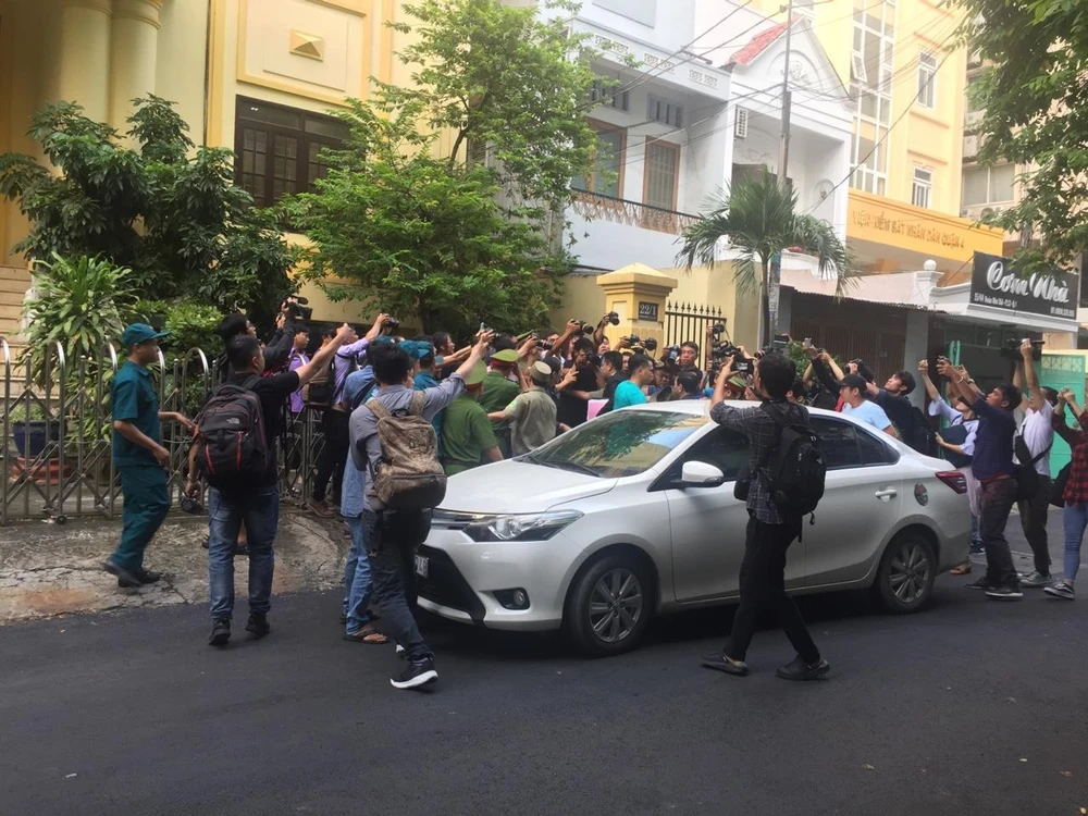 8 giờ 30 sáng 23-8, lúc này, dày đặc phóng viên báo chí có mặt bên ngoài cổng TAND quận 4 dù ông Nguyễn Hữu Linh đã vào bên trong tòa.