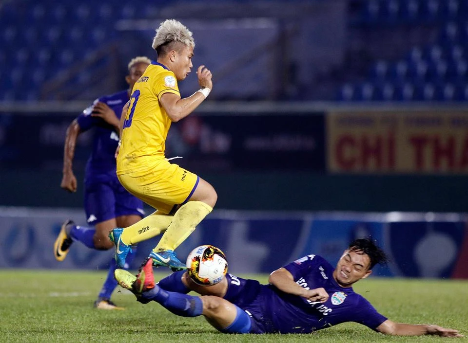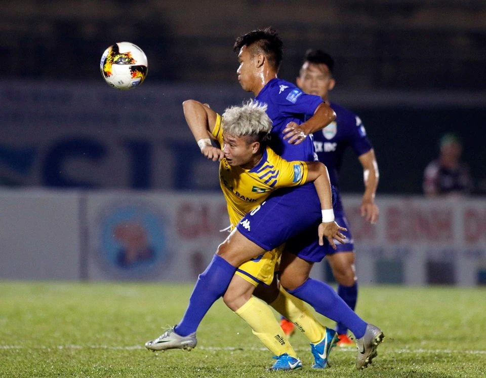 Hôm nay Phi Sơn (10, vàng) là ngòi nổ mọi đợt tấn công của SL Nghệ An.