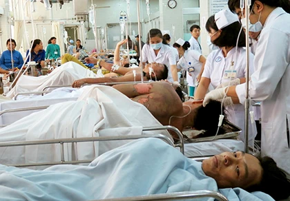 Thông tin từ bệnh viện ở thời điểm được đưa vào cấp cứu, bệnh nhân trúng hóa chất vào người đều phỏng sút nặng (chiếm khoảng 30% diện tích cơ thể). Đặc biệt, bệnh nhân Nguyễn Văn Lộc, Trần Văn Mười phỏng nặng ở mức độ 3 - 4 tại lưng, ngực và mặt.