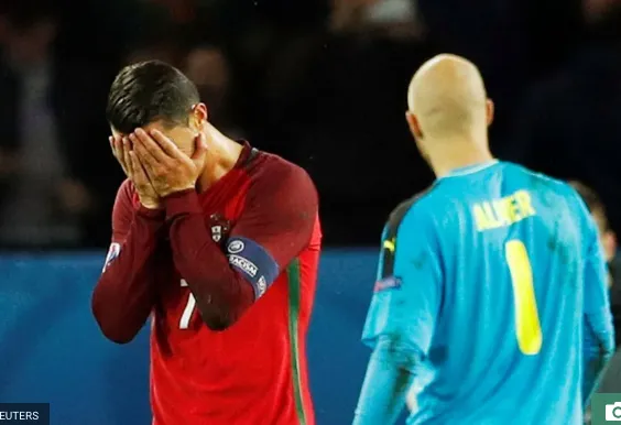 Cristiano Ronaldo ôm mặt thất vọng vì đá hỏng penalty