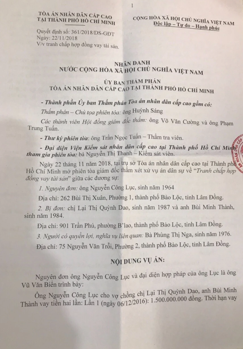 Quyết định giám đốc thẩm của TAND cấp cao TP.HCM. Ảnh: YC