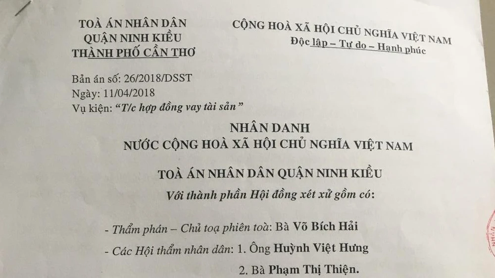 Xử sơ thẩm vào tháng 4-2018, TAND quận Ninh Kiều đã chấp nhận yêu cầu khởi kiện của công ty NT, buộc ông T. phải trả cho công ty hơn 200 triệu và lãi phát sinh hơn 50 triệu, tổng cộng hơn 260 triệu đồng.