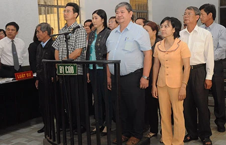 Các bị cáo đang nghe TAND tỉnh Đắk Lắk tuyên án (sơ thẩm) vào ngày 6-6-2013. Ảnh: T.TRANG