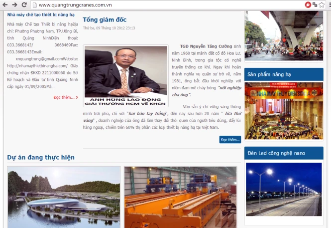 Ông Nguyễn Tăng Cường trên trang web của Xí nghiệp Cơ khí Quang Trung