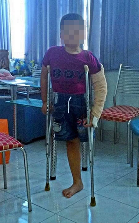 B. đã lên bảy tuổi và vừa mổ xong cánh tay trái. Ảnh: P.NAM