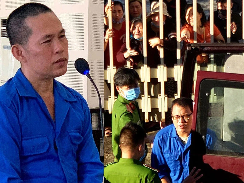 Bị cáo Thành (trái). Nhiều người thân vẫy theo khi bị cáo Quang rời tòa.