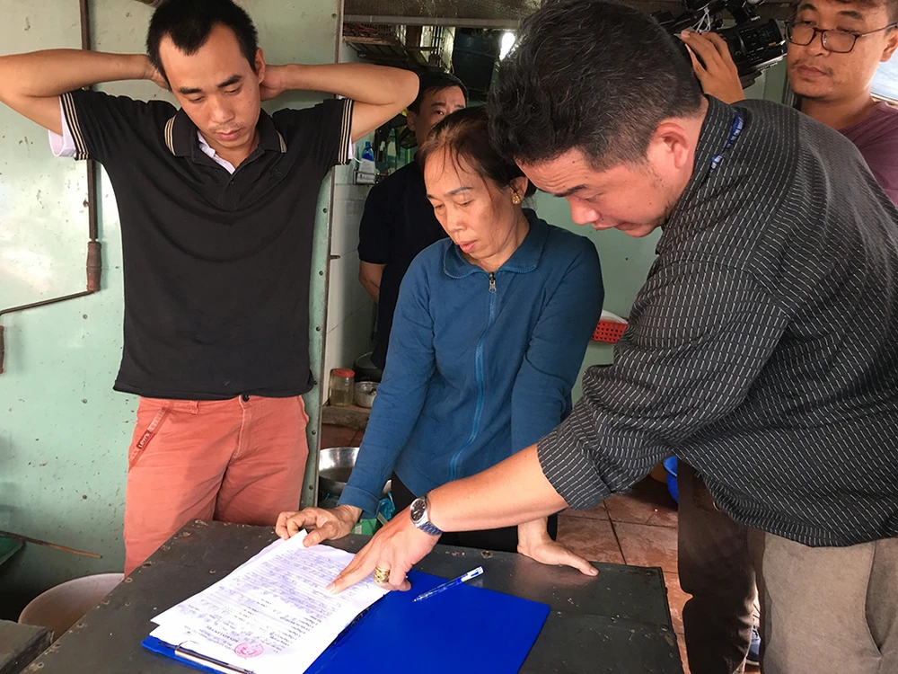Cơ quan chức năng lập biên bản với một hộ kinh doanh tái phạm. Ảnh NT