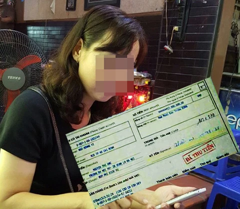 Nạn nhân T. và hóa đơn chuyển tiền cho kẻ lừa. Ảnh: TP