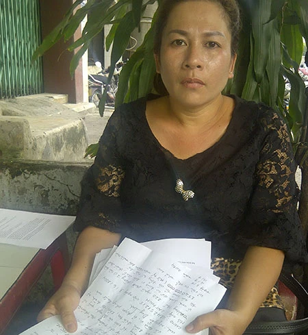 Nạn nhân Hoàng Xuân Diễm cùng đơn tố cáo. Ảnh: AN
