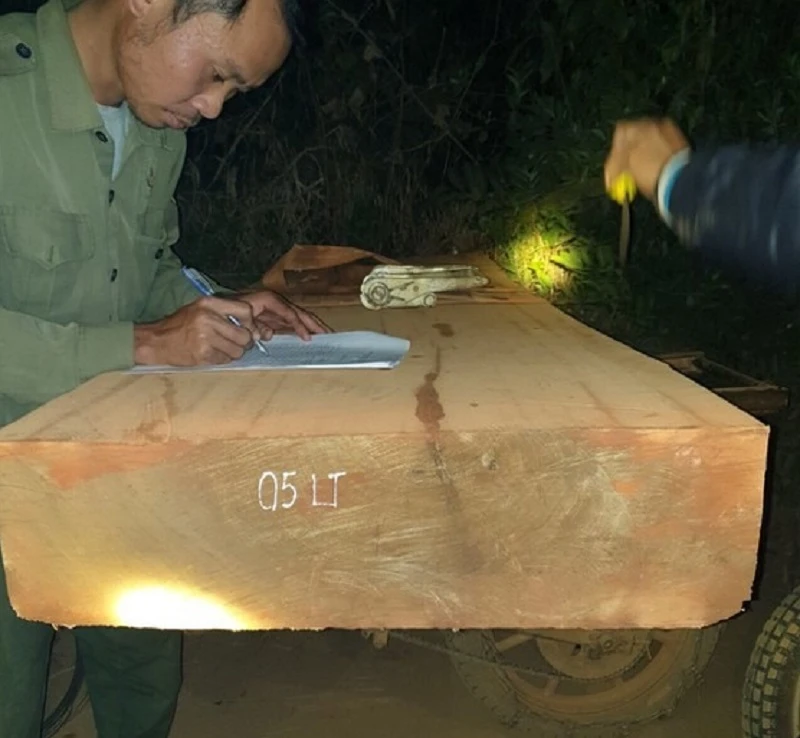 Nhiều tấm gỗ lớn được phát hiện vận chuyển trái phép trong đêm. (Ảnh GĐ)
