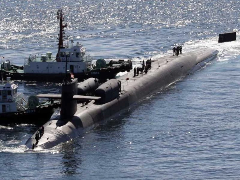 Tàu ngầm USS Michigan của Mỹ cập cảng Busan đầu tháng 10. Có thông tin cho rằng biệt kích SEAL trên tàu đã tham gia diễn tập kế hoạch tấn công nhắm vào ông Kim Jong-un. Ảnh: AFP
