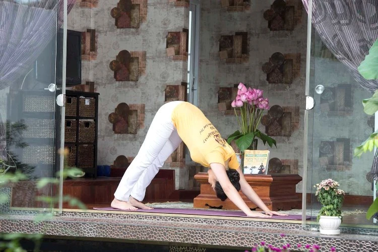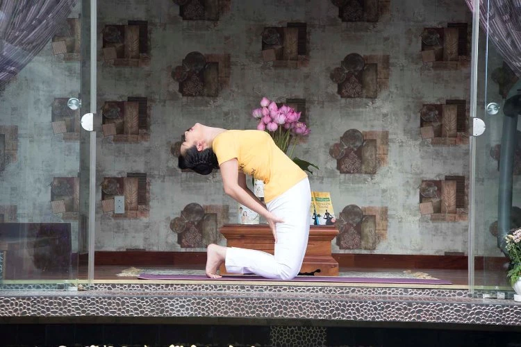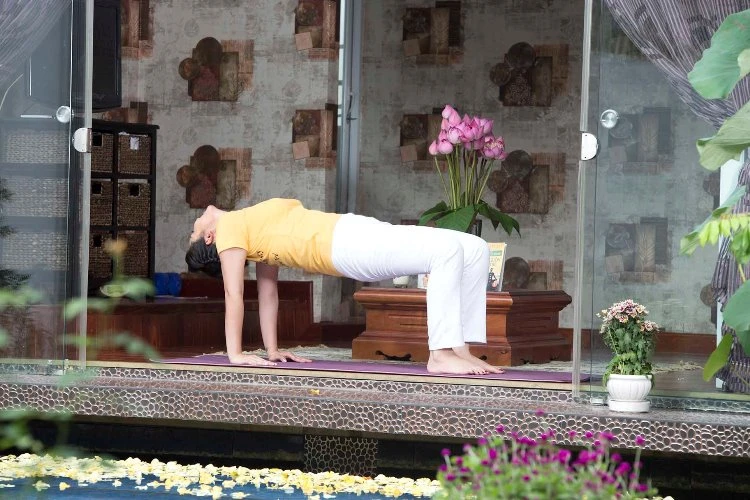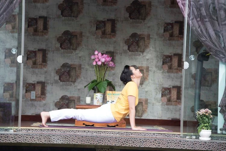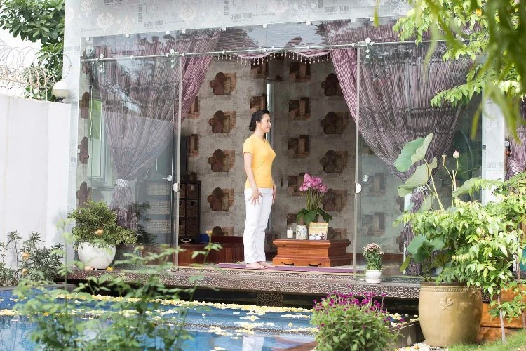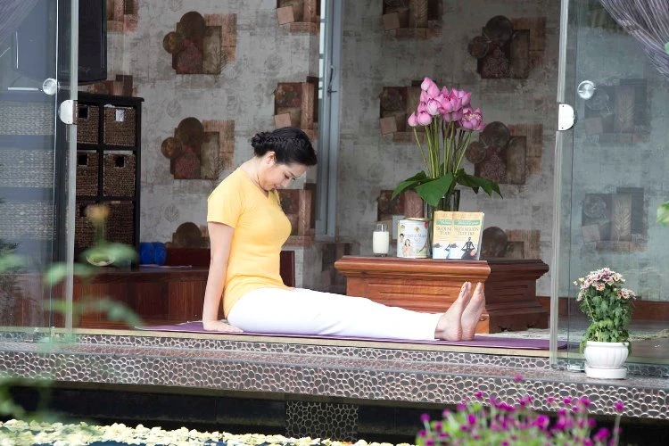Ngô Phương Lan và những giây phút thư giãn với thiền. Ảnh:Bình Yên Nguyễn