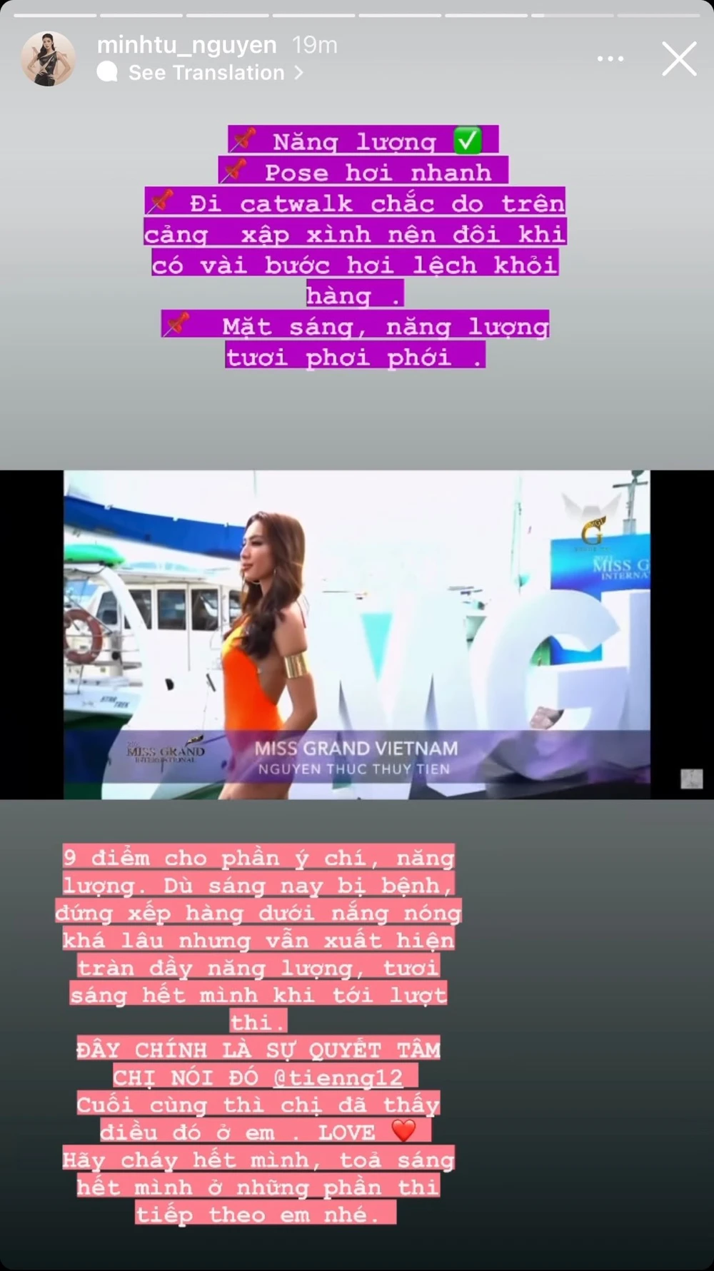 Đây chính là sự quyết tâm mà chị nói đó Thùy Tiên. Cuối cùng thì chị đã thấy điều đó ở em. Hãy cháy hết mình, tỏa sáng hết mình ở những phần thi tiếp theo em nhé”.