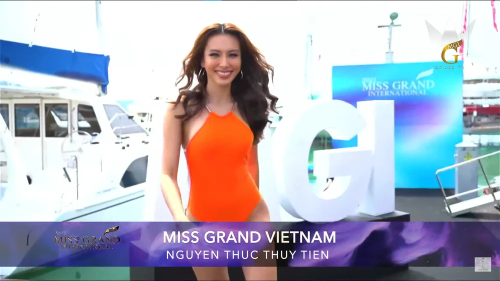 Ngày 21-11, Thùy Tiên cùng gần 60 đại diện của cuộc thi Miss Grand International 2021 (Hoa hậu Hòa bình Quốc tế) đã chính thức tranh tài ở phần thi phụ đầu tiên - trình diễn trang phục áo tắm.