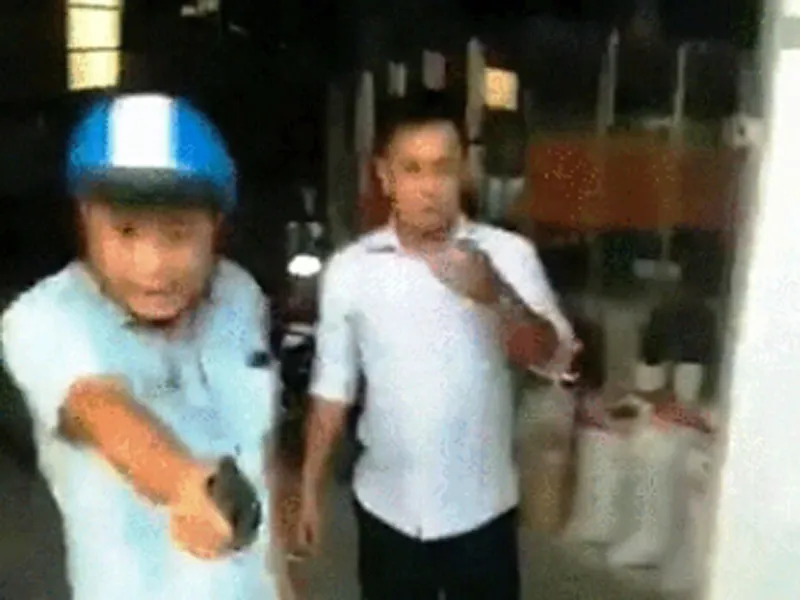 Người cầm súng công cụ hỗ trợ bắn chỉ thiên để giải tán đám đông được xác định là Thượng úy Đinh Hoàng Nam.