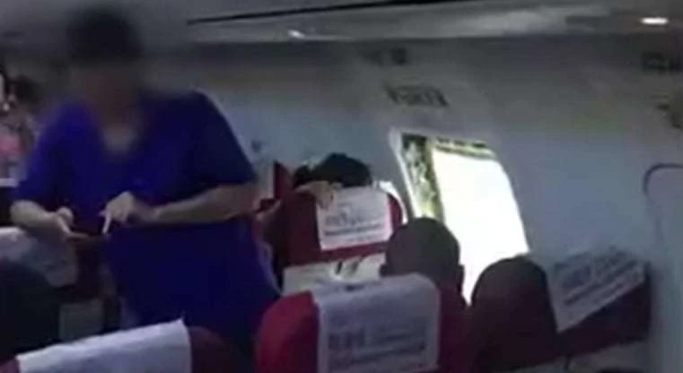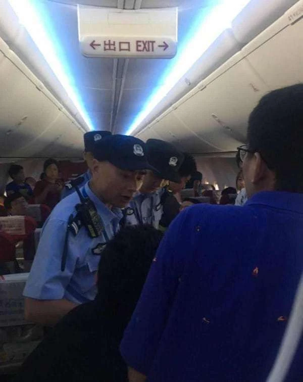 Đến tận 6 giờ sáng, sau bốn tiếng mệt mỏi, khó chịu vì phải chờ đợi, một thanh niên mặc áo phông màu xanh đột nhiên bật tung cửa khẩn cấp của máy bay khiến mọi thứ náo loạn. Tuy nhiên, nhân viên an ninh nhanh chóng giải quyết sự cố và đưa thanh niên "gây rối" đi.
