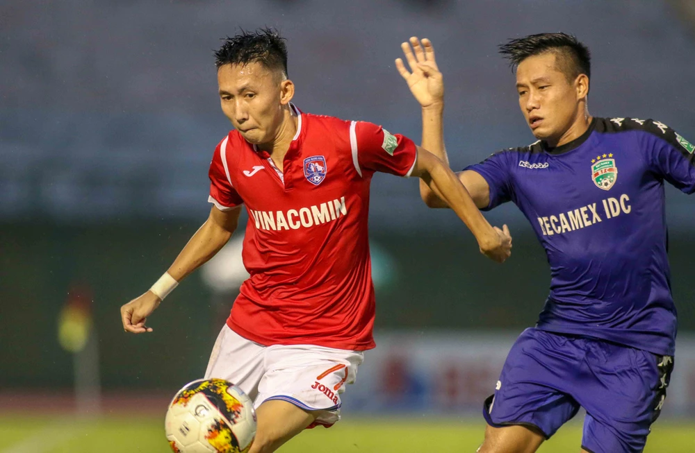 Nghiêm Xuân Tú hài hước nhắn đồng nghiệp Hà Nội tự chia đôi mà đá, vì cầu thủ Than Quảng Ninh không tiếp tục ra sân khi bị nợ quá nhiều tiền. Ảnh: ANH PHƯƠNG.