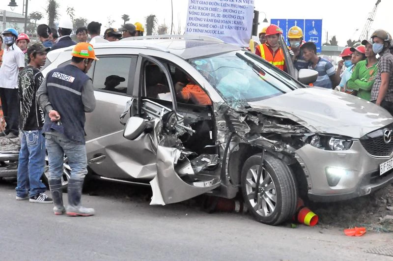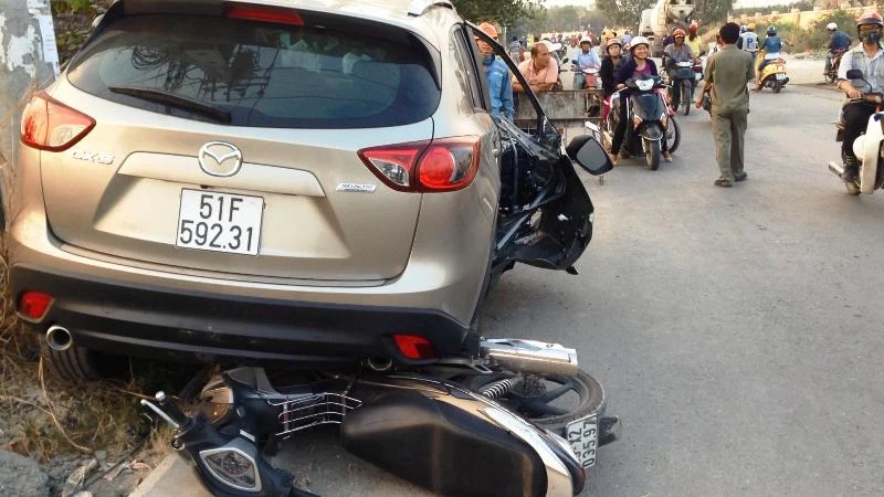 Khi vừa đến địa phận phường Tăng Nhơn Phú A (quận 9, TP.HCM) thì chiếc xe bất ngờ mất lái lao thẳng vào 2 công nhân đang băng qua đường và tiếp tục lao tới tông thẳng vào một xe điện lực đang dừng đỗ để lắp đặt hệ thống chiếu sáng. Sau đó chiếc xe này lùi lại lao qua đường và cuốn một chiếc xe máy của một công nhân điện lực để trên lề đường.
