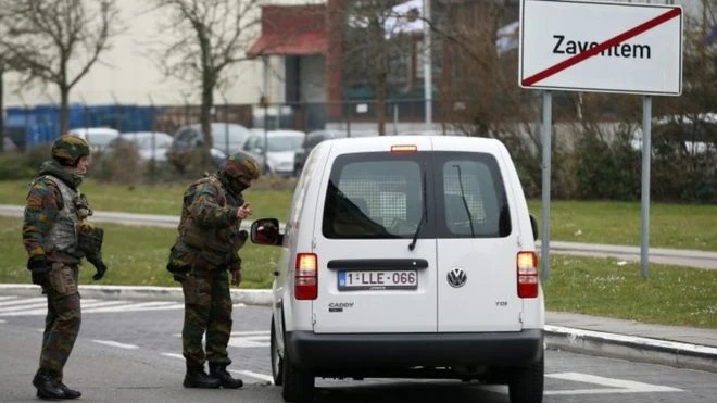 Cảnh sát Bỉ tăng cường kiểm tra an ninh sân bay Zaventem (Brussels) ngày 24-3. (Ảnh: BBC)
