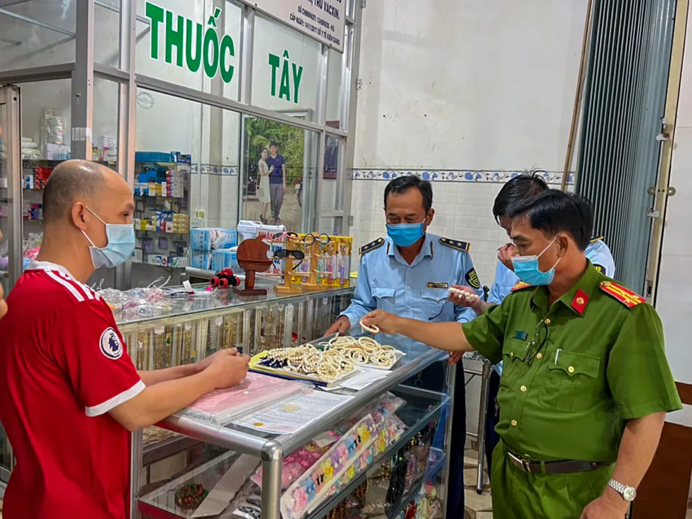 Cụ thể, qua công tác nắm thông tin về hoạt động kinh doanh của các cơ sở kinh doanh sản phẩm động vật nguy cấp trên địa bàn tỉnh, Đội QLTT số 1 (thuộc Cục QLTT tỉnh Kiên Giang) phối hợp thành lập hai đoàn kiểm tra các cơ sở kinh doanh vàng bạc, đá quý trên địa bàn hai huyện An Biên và huyện An Minh.