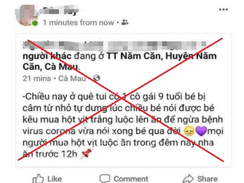Sở đã làm rõ chủ tài khoản trên là chị M., ở ấp Ông Khâm, huyện Cái Nước, tỉnh Cà Mau. Chị M. thừa nhận có đăng tải nội dung trên, bởi trước đó đọc được trên mạng xã hội. Chị M. tin là thật nên chia sẻ để mọi người phòng ngừa dịch bệnh.