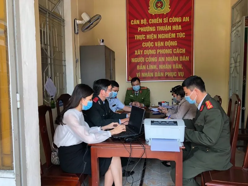 Lực lượng chức năng làm việc với chủ tài khoản Facebook "Tinh Dầu Tràm Huế”.