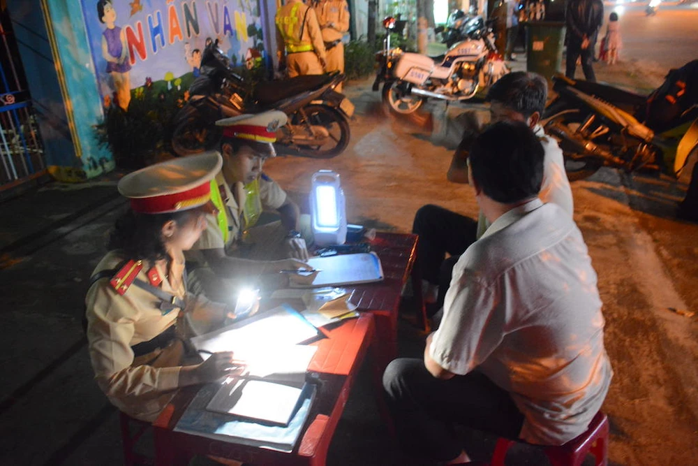 Tối 6-1, Đội CSGT Công an TP Tam Kỳ (Quảng Nam) ra quân kiểm tra nồng độ cồn trên nhiều tuyến đường chính của TP.
