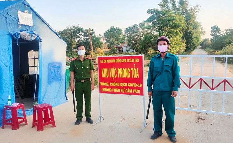Chốt kiểm soát khu vực phong tỏa tại xã Ea Trol, huyện Sông Hinh (Phú Yên). Ảnh: THANH HẢI