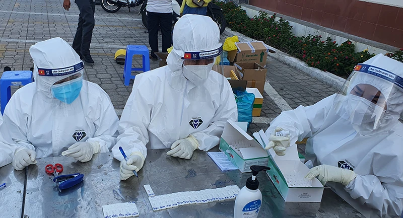 Test nhanh COVID-19 trên diện rộng ở Phú Yên. Ảnh: TẤN LỘC