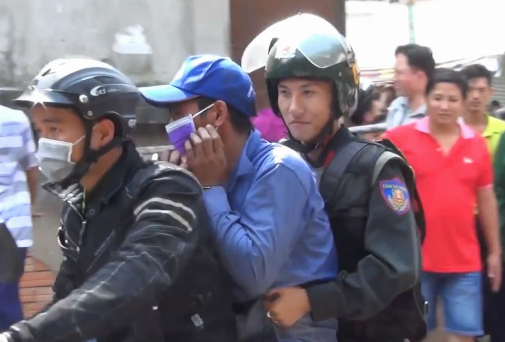 Nghi can bị khống chế đưa về cơ quan công an để điều tra làm rõ. Ảnh: VH