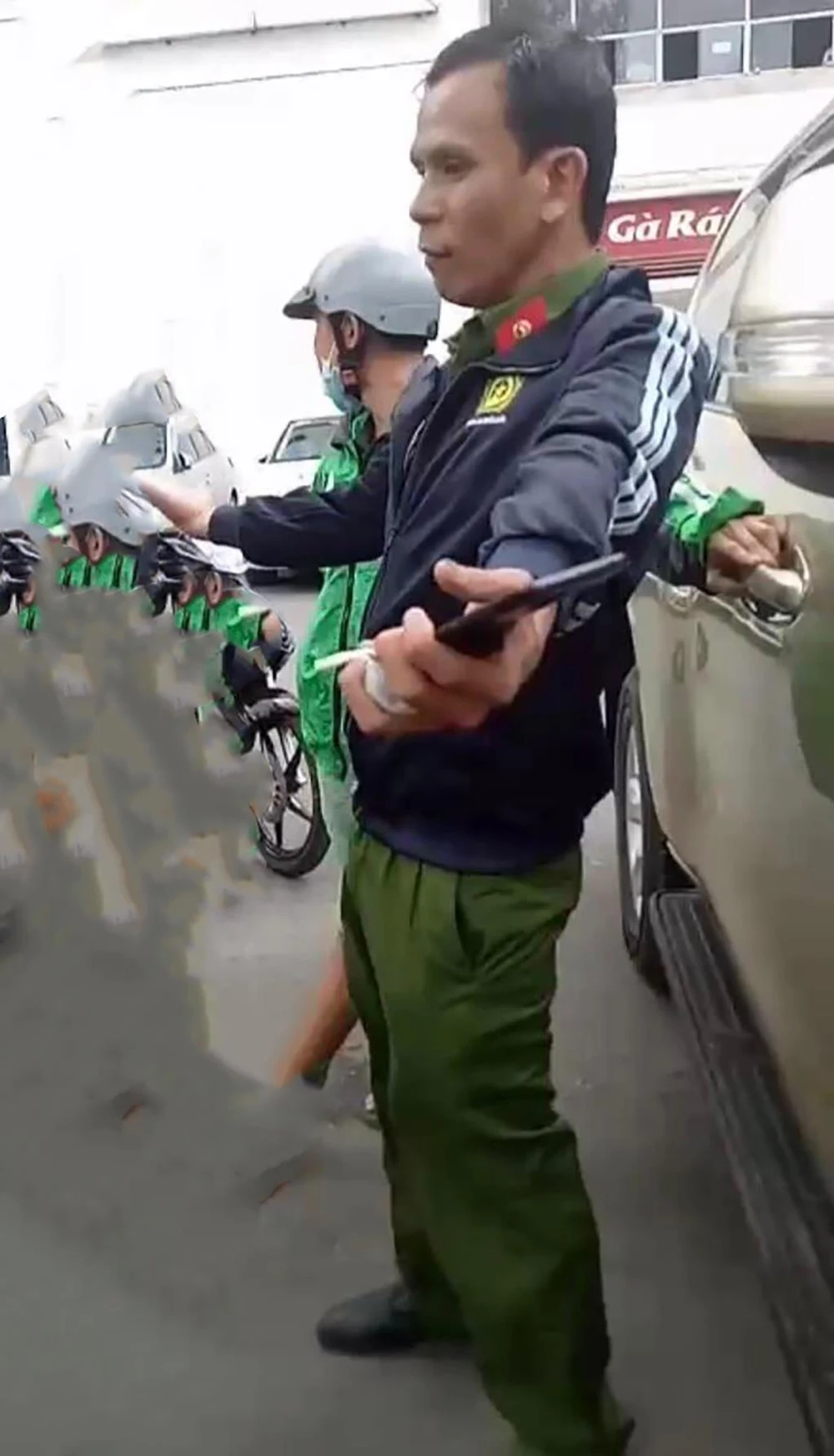 Thấy động, nam thanh niên chạy xe máy đi cùng tháo chạy. Riêng bảo tỏ thái độ bình tĩnh giấu đi đồ nghề và xưng là cảnh sát hình sự đang tuần tra khu vực. Để "chứng minh", người này cởi áo khoác ngoài lộ ra sắc phục cấp hàm thượng úy.