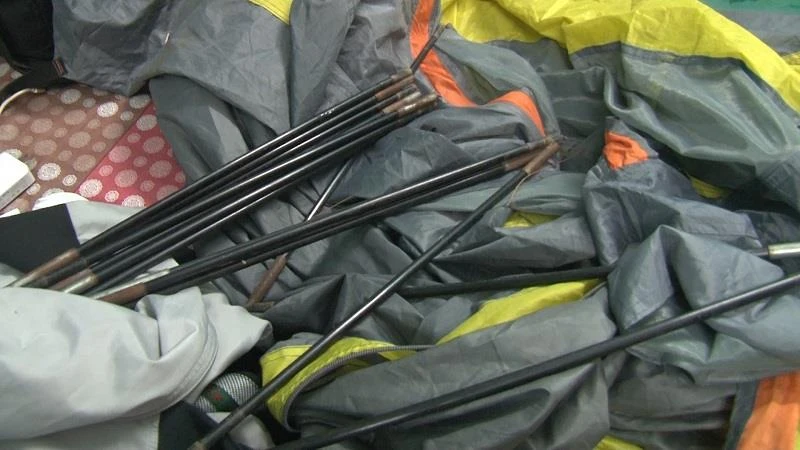 Vật dụng lập lều trại của Vũ và Tùng. Ảnh: CQ