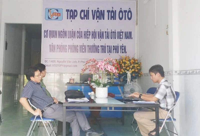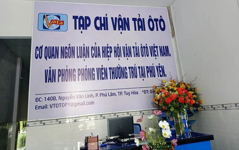 Tại thời điểm kiểm tra, ông Phan Bá Hoài tự treo hai bảng hiệu “Tạp chí vận tải Ô tô – Cơ quan ngôn luận của Hiệp hội vận tải ô tô Việt Nam - Văn phòng phóng viên thường trú tại Phú Yên” ở bên trong phòng làm việc và phía trước căn nhà 140B Nguyễn Văn Linh, phường Phú Lâm, TP Tuy Hòa.