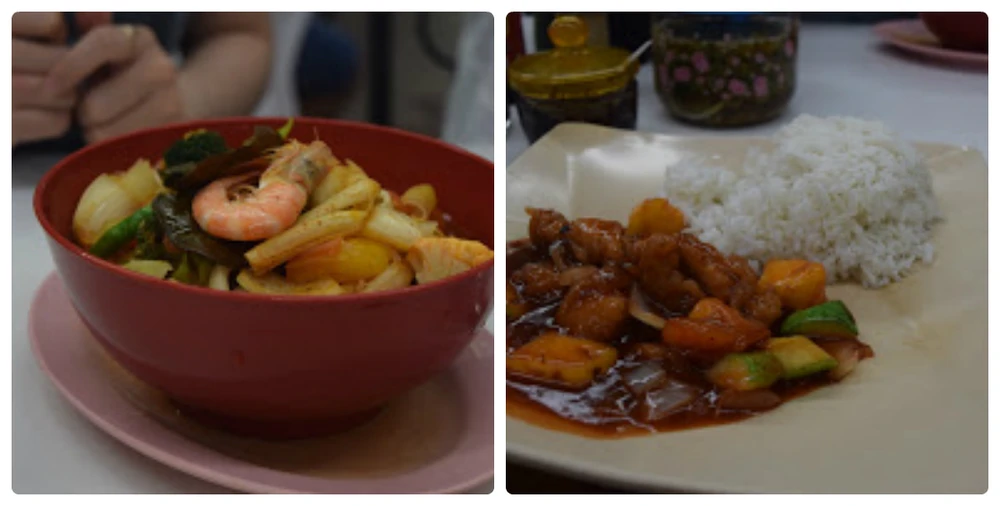 Tôm yum và cơm gà chua ngọt tại Sentral Melaka
