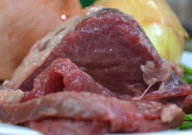 Khi thái, miếng thịt dính dao. Thịt bò khi còn sống có mùi rất đặc trưng của bò. Thịt bò thật sau khi xào nấu vẫn giữ được màu hồng sậm, vị ngọt.