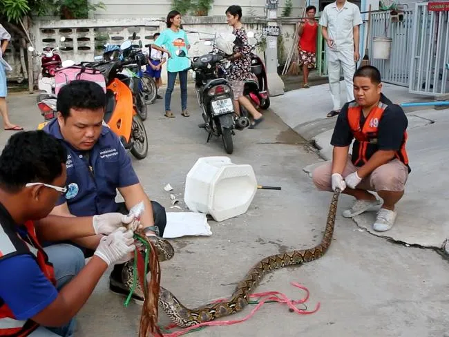 Lực lượng cứu hộ phải phá bỏ cái xí bệt nhà anh để bắt con rắn vốn vẫn đang mắc kẹt trong đó. Họ nhận định có thể con rắn đã chui vào bồn cầu nhà anh Boonmakchuay qua đường ống nước. Con rắn sau đó được thả về thiên nhiên.