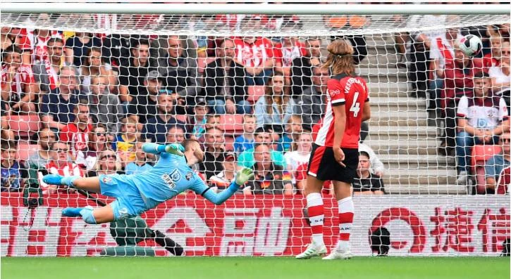 Sau đó, Ings đánh đầu buộc De Gea bay người đẩy bóng ra, Danso nhanh chóng có bóng rồi tạt vào cực chuẩn cho Vestergaard bật cao đè người Lindelof đánh đầu tung lưới De Gea ở cự ly gần, san bằng tỉ số 1-1 cho chủ nhà Southampton.