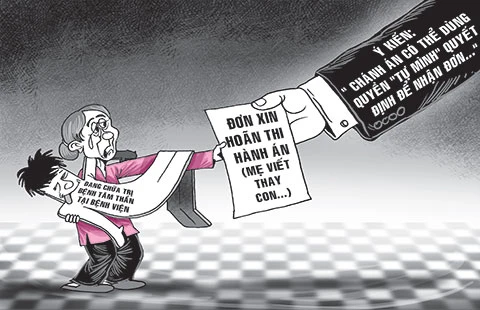 “Con trai tôi bị bệnh rối loạn tâm thần nặng, đang phải nằm chữa trị ở bệnh viện, không làm chủ được bản thân nên tôi gửi đơn xin hoãn án tù cho nó. Tuy nhiên, tòa cứ đòi con tôi phải tự viết đơn và phải lên đây thì họ mới chịu giải quyết. Con tôi đâu còn nhận thức được gì thì làm sao mà viết nổi đơn. Ngoài ra, nó còn bị thêm bệnh xơ gan cổ trướng nữa, làm sao mà lên tòa được. Tôi khổ quá, không biết phải làm gì bây giờ nữa!” - bà Nguyễn Thị Rỡ (ngụ huyện Củ Chi, TP.HCM) than thở với chúng tôi.