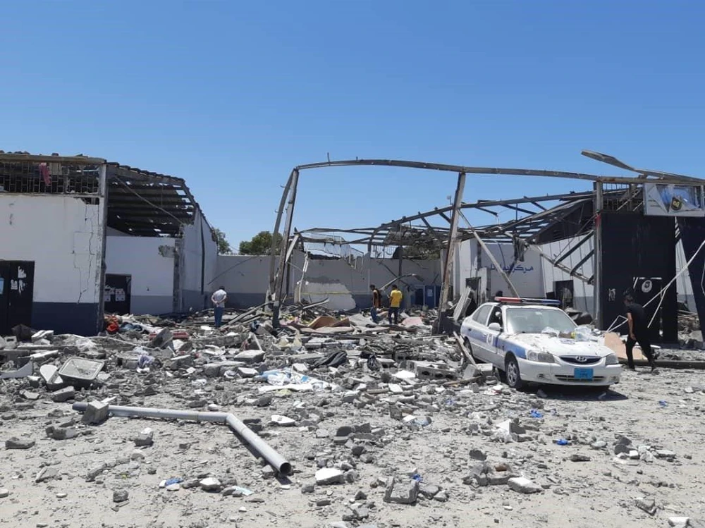 Hiện trường trận không kích trung tâm giam giữ người di cư Tajoura ở Tripoli ngày 2-7. Ảnh: TWITTER