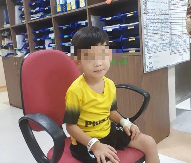 Bé trai vui mừng thoát khỏi năm năm bị mắc bệnh. Ảnh: BV