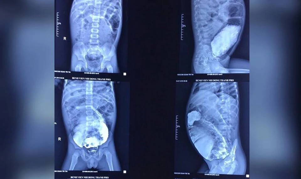 Hình ảnh đại tràng dãn to, ứ đầy phân của bé trai. Ảnh: BV