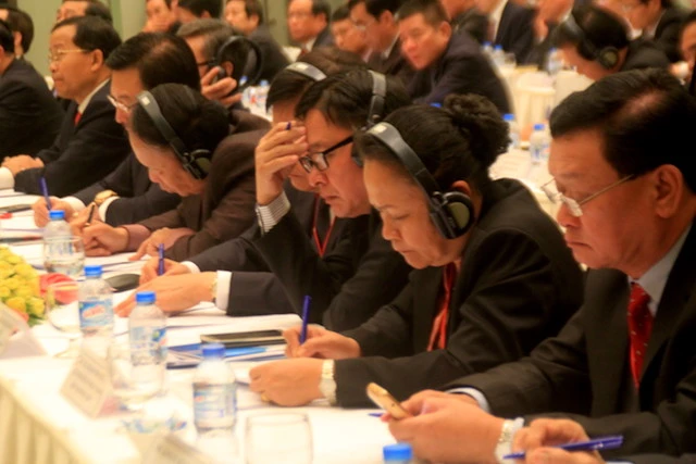 Các đại biểu, doanh nghiệp tham dự hội nghị đầu tư Việt Nam - Lào diễn ra sáng 27-3 tại Đà Nẵng. Ảnh: LÊ PHI