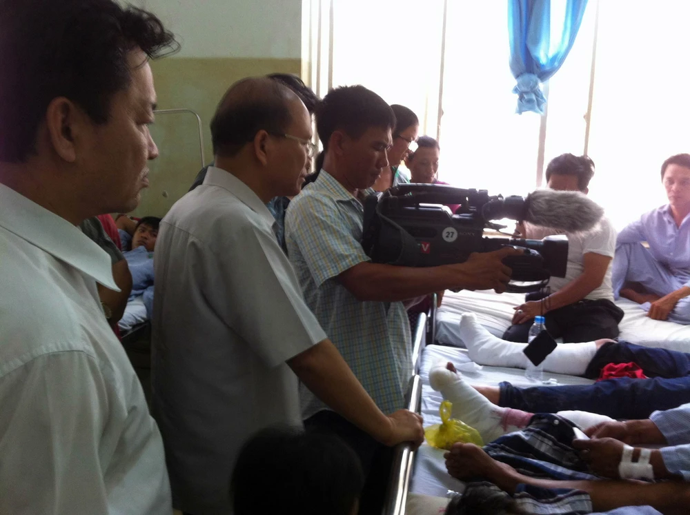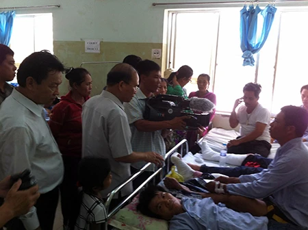 Lãnh đạo tỉnh Bình Thuận đến bệnh viện để thăm hỏi, chia sẻ cùng các nạn nhân vụ tai nạn thảm khốc. Ảnh: PN