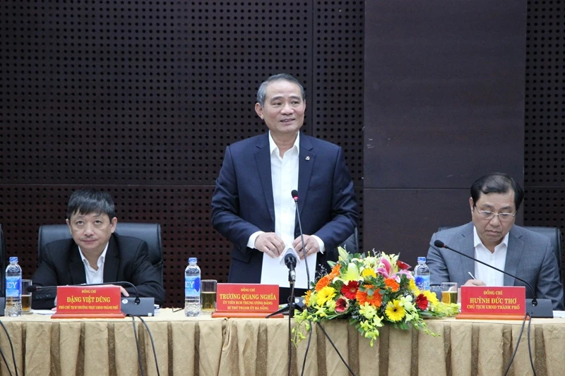 Bí thư Thành ủy Đà Nẵng Trương Quang Nghĩa phát biểu tại cuộc họp. Ảnh: TẤN VIỆT
