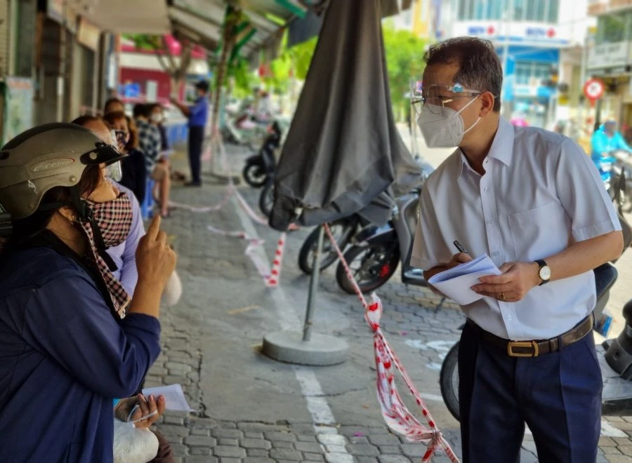 Trong quá trình kiểm tra, ông Quảng đã trực tiếp thăm hỏi một số người dân liên quan việc tiếp nhận các chính sách hỗ trợ của TP thời gian qua, nhất là trong những ngày “ai ở đâu thì ở đó”.