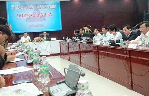 Buổi họp báo diễn ra với sự chủ trì của bí thư Thành ủy và chủ tịch UBND TP Đà Nẵng. Ảnh: LÊ PHI
