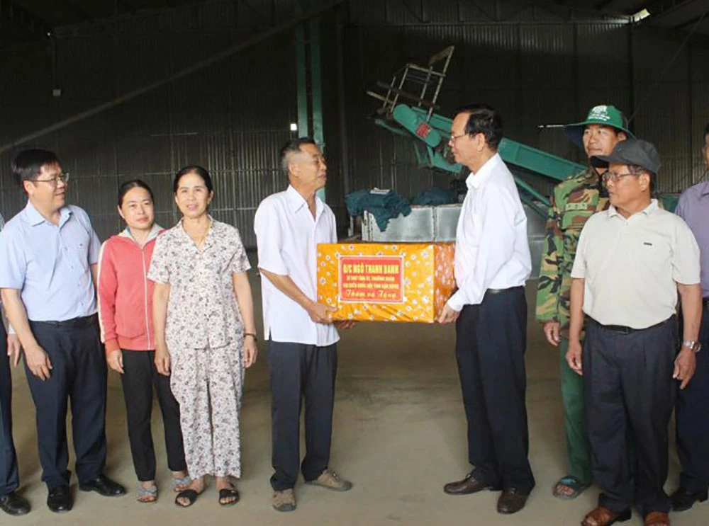 Bí thư Tỉnh ủy, Trưởng Đoàn ĐBQH tỉnh Đắk Nông Ngô Thanh Danh tặng quà Hợp tác xã Sản xuất lúa gạo Buôn Choáh. Ảnh: H.HOÀI