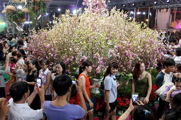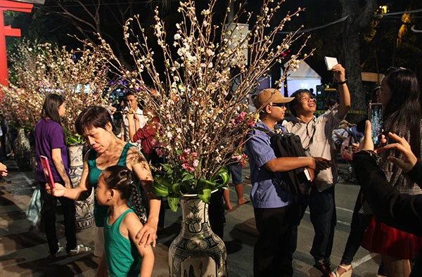 Lễ hội, trưng bày khoảng 100 cây và 10.000 cành hoa anh đào được vận chuyển từ TP Hokkiado (Nhật Bản). Đây cũng là lần đầu tiên lễ hội đặt chân tới TP.HCM. Ảnh: HOÀNG GIANG