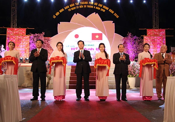 Tham dự lễ khai mạc có nguyên Thủ tướng Chính phủ Nguyễn Tấn Dũng, Bí thư Thành ủy TP.HCM Đinh La Thăng, nguyên Bí thư Thành ủy TP.HCM Lê Thanh Hải, các đoàn khách Nhật Bản và đông đảo người dân TP. Ảnh: HOÀNG GIANG