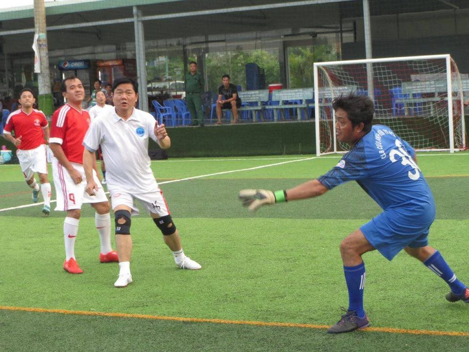 Bí thư Đinh La Thăng đi bóng điệu nghệ qua một cầu thủ trẻ của đội Cựu sinh viên TP.HCM…
